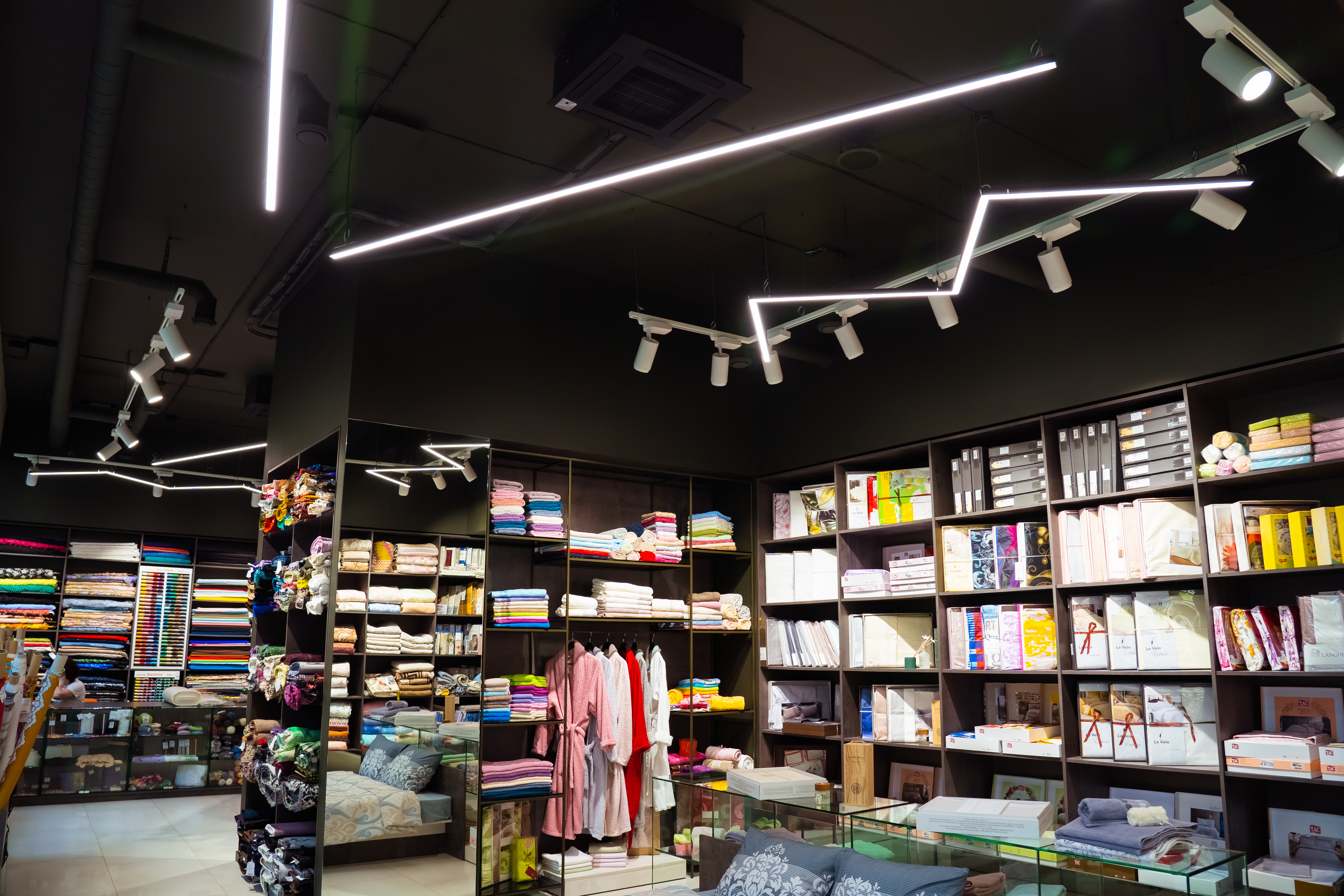 Задача: сделать общий свет нестандартным, запоминающимся, выделяющим магазин среди конкурентов, но при этом выполняющим свою главную функцию освещения.