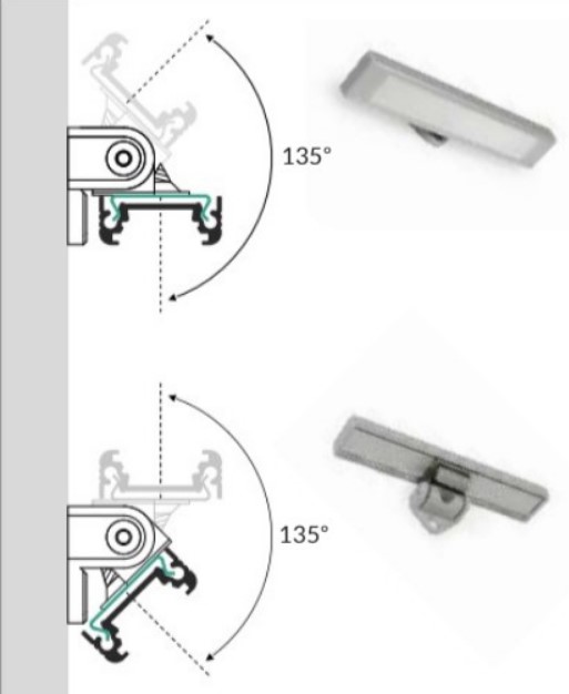• Благодаря использованию шарнирной рукоятки - можно осветить необходимую поверхность под любым углом (диапазон 135 °)