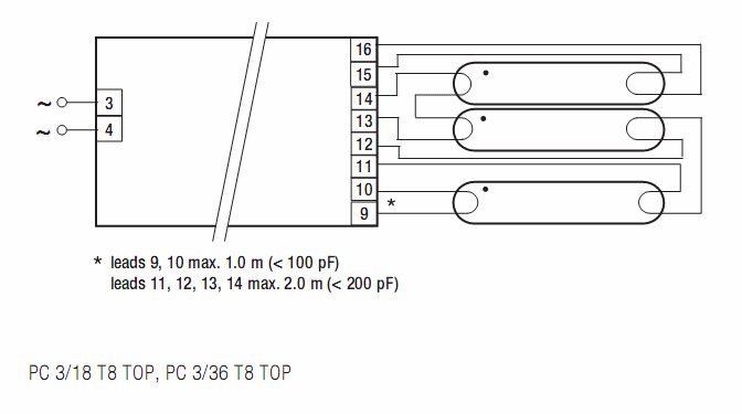 ЭПРА типа PC TOP EN сконструированы на основе новейших достижений современной электроники. Разработаны и выпускаются одно-, двух-, трех- и четырех- ламповые модификации изделий для работы с лампами Т8 в диапазоне мощности 18–70 Вт.