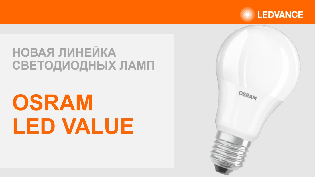 Светодиодная лампа OSRAM LED VALUE - это лампа грушевидной формы, в которой в качестве источника света использован полупроводниковый элемент – светодиод. Лампы с цоколем Е27 являются одними из наиболее распространенных видов ламп, их широко используют во многих бытовых осветительных приборах. LED VALUE - новая линейка светодиодных ламп, предназначенная для легкого перехода на светодиодные лампы.