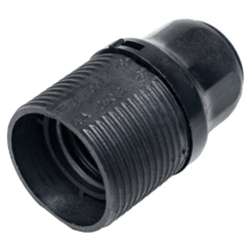 Патрон Е27 Bylectrica Е27Н-007, с круглой резьбой и защитой от капель воды. Выполнен в черном цвете и защищен по IP21. Сечение проводников 0.5x2.5 мм2.