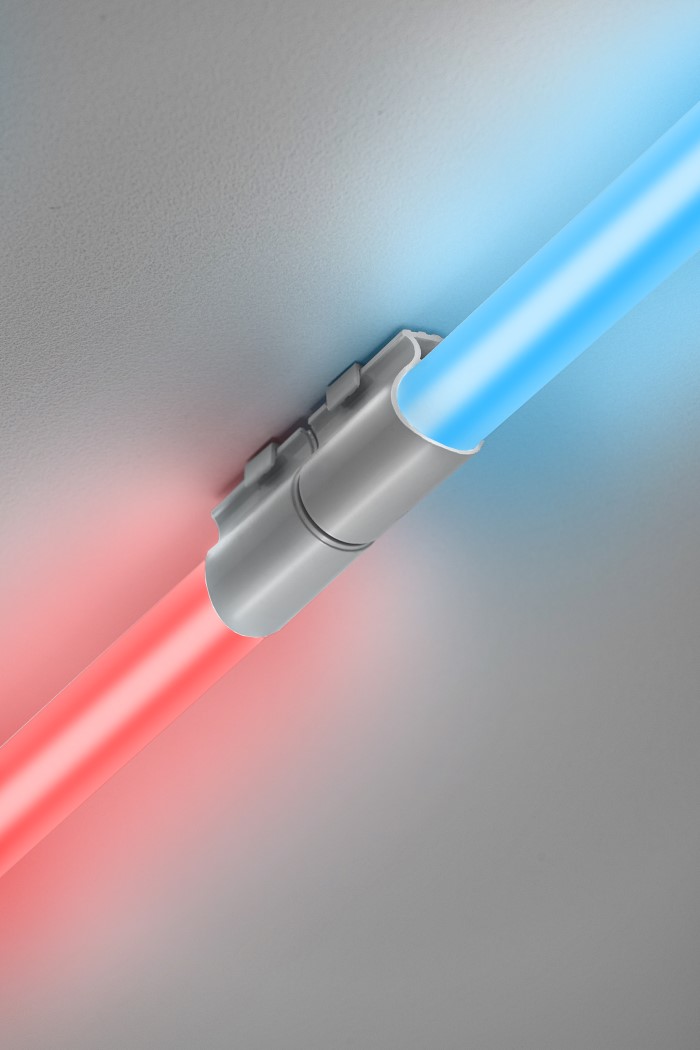 Так как светильники легко соединяются между собой (до 5 светильников), то возможен их монтаж в единую световую линию, что дает самые различные варианты их использования при цветном освещении пространств и помещений.