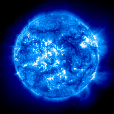 Изображение Солнца в ультрафиолетовом спектре в искусственных цветах
