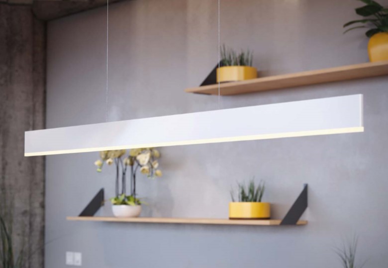 Подвесной линейный светодиодный светильник GTV LED FORTA. Выполнен в корпусе из алюминия белого цвета, с пластиковым матовым рассеивателем. Корпус защищён по стандарту IP20 и IK08.