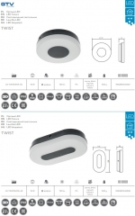 Светодиодный светильник GTV, серии TWIST. Выполнен в корпусе из поликарбоната черного цвета, с белым матовым рассеивателем. Корпус защищён по высоким стандартам IP и IK.