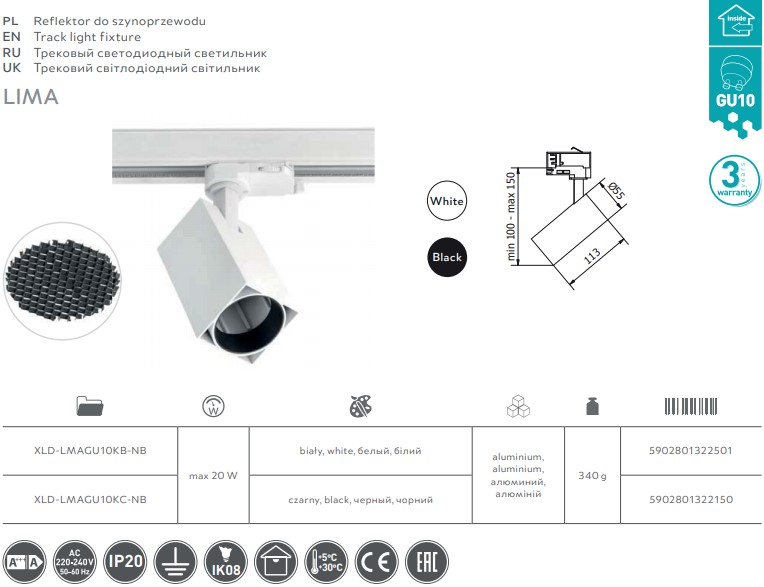 Светильник traklight LIMA сочетает простоту, функциональность и удобство в эксплуатации.