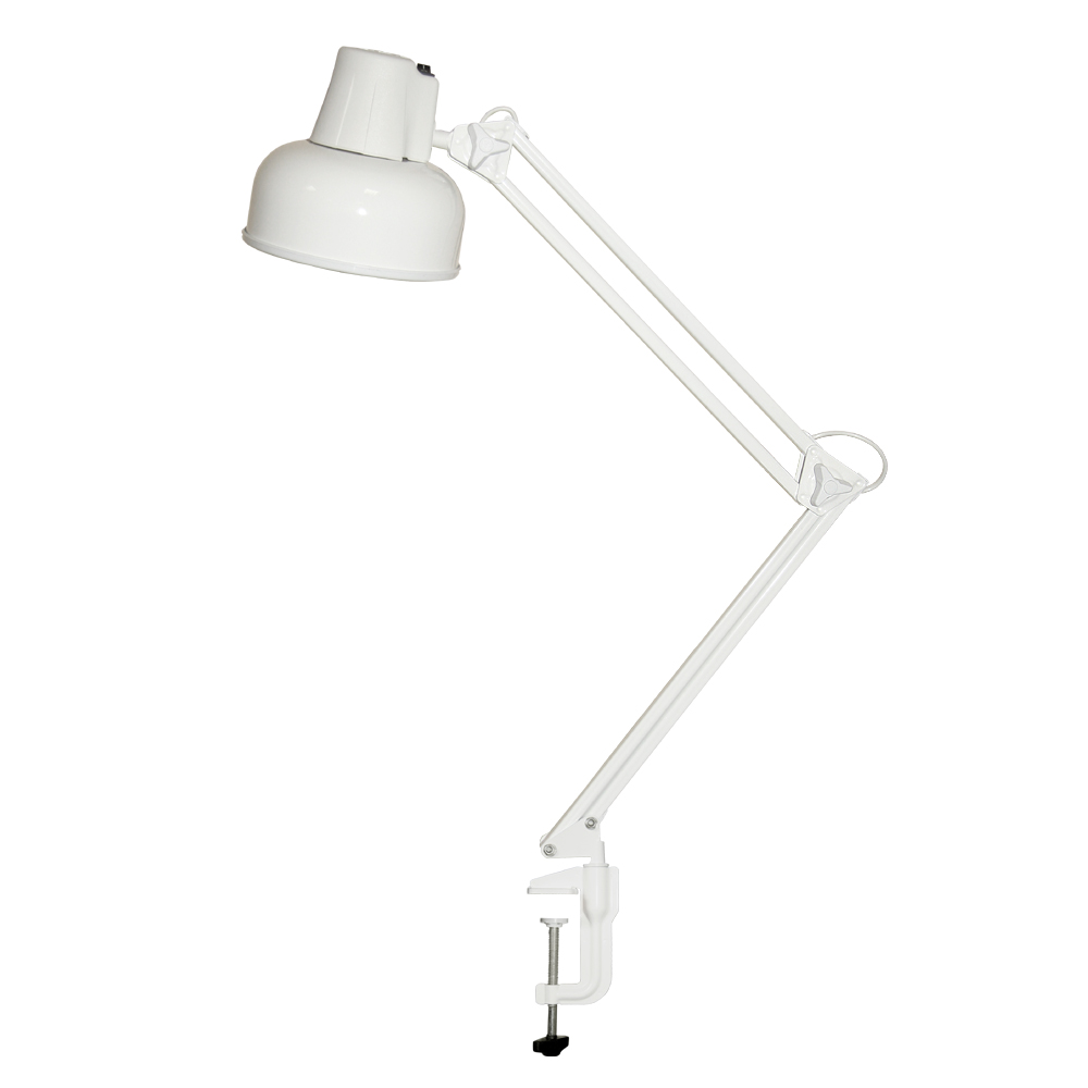Светильник с патроном Е27, с максимальной мощностью не более 60Вт. Комплектуется универсальной пластиковой струбциной, конструкция которой предполагает крепление на любой горизонтальной или вертикальной поверхности. Выполнен в белом цвете.