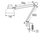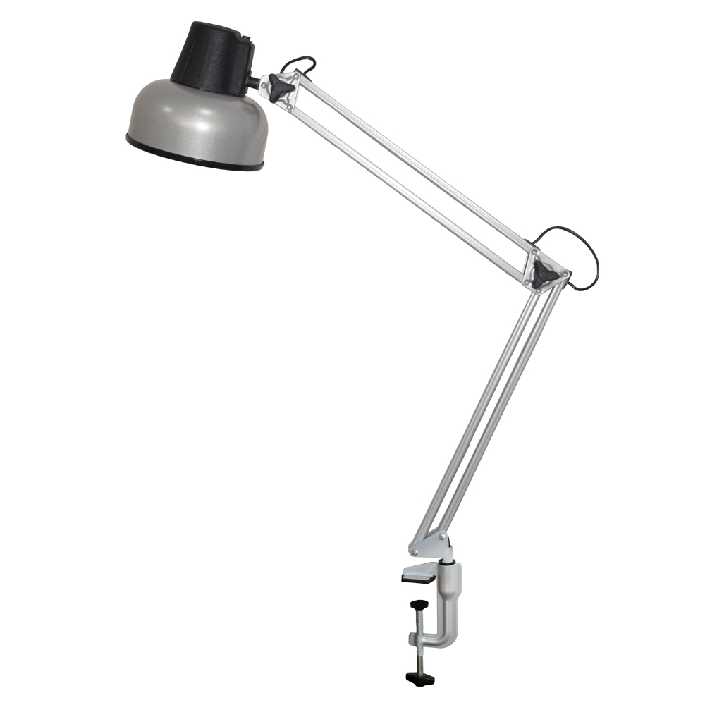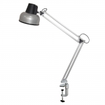 Светильник с патроном Е27, с максимальной мощностью не более 60Вт. Комплектуется универсальной пластиковой струбциной, конструкция которой предполагает крепление на любой горизонтальной или вертикальной поверхности. Выполнен в серебряном цвете.