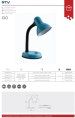 Светильник настольный GTV LB-RIOE27-20 RIO, E27, max. 40W, 220-240V, IP20, черный корпус из пластика и металла