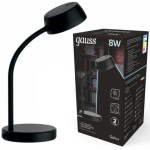Светильник светодиодный диммируемый настольный на подставке Gauss GT6012 QPLUS GTL601, 8Вт, 600Лм, 4000К, Ra>85, 170-265В/50Гц, IP20, 1/8, гибкий держатель, регулируемая яркость, сенсорное управление, черный корпус из пластика