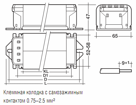 Электромагнитные ПРА серии ОМ предназначены для работы с ртутными, металлогалогенными или натриевыми лампами высокого давления мощностью от 35 до 400 Вт. Их компактная форма дает отличные возможности для конструирования различных светильников. Самозажимные клеммы обеспечивают быстрое и надежное подключение и, кроме этого, позволяют просто включать ПРА с отводами по напряжению в сети с разным напряжением. Также имеются варианты с различными основаниями и разными способами установки. Поперечное сечение ПРА серии ОМ – 65 х 47 мм при длине сердечника от 30 до 150 мм.