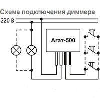 Внимание! Подключение диммера «Агат» и замену ламп производить только при отключенном напряжении сети. Суммарная мощность нагрузки, подключаемой к диммеру «Агат-К-500», не должна превышать 500 Вт.