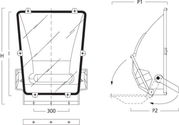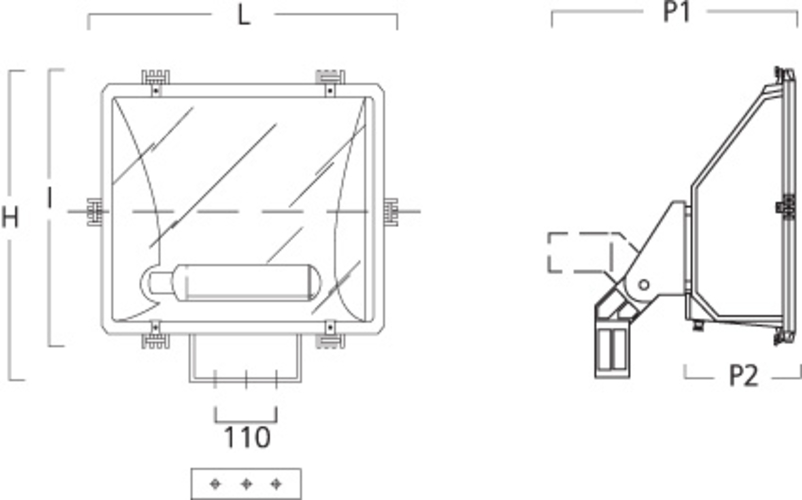 Прожектор FMD ASYM легкий в установке и обслуживании, выбор отражателей: экстенсивный или интенсивный, асимметричное распределение.