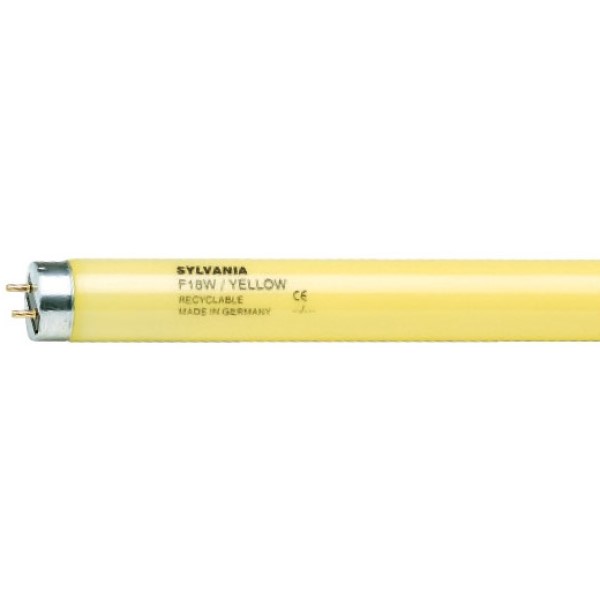 Люминесцентная лампа с цветным люминофором Sylvania COLOURED. Цветная люминесцентная лампа с желтым свечением T8 G13 – трубчатая ртутная лампа низкого давления с внутренним люминесцентным напылением желтого цвета.