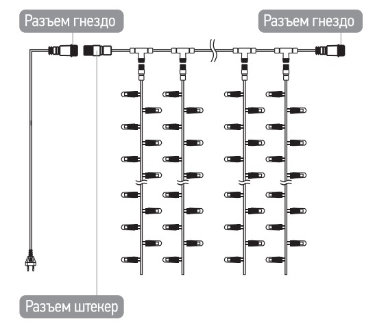 Гирлянда типа "Занавес" применяется для украшения фасадов различных зданий на праздники, окон, дверных проемов и т.п.
