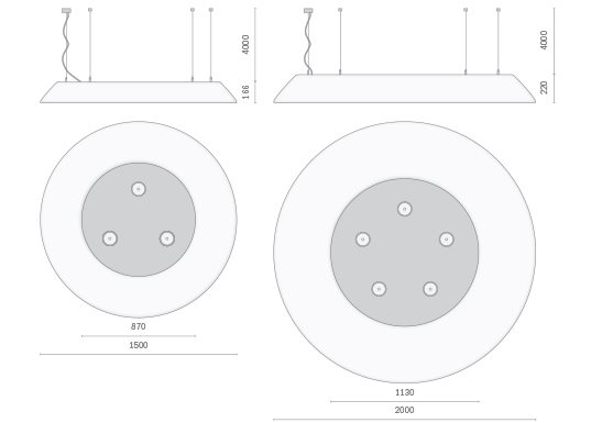 Два типоразмера – 1500 мм и 2000 мм. Два типа крепления – подвесной и