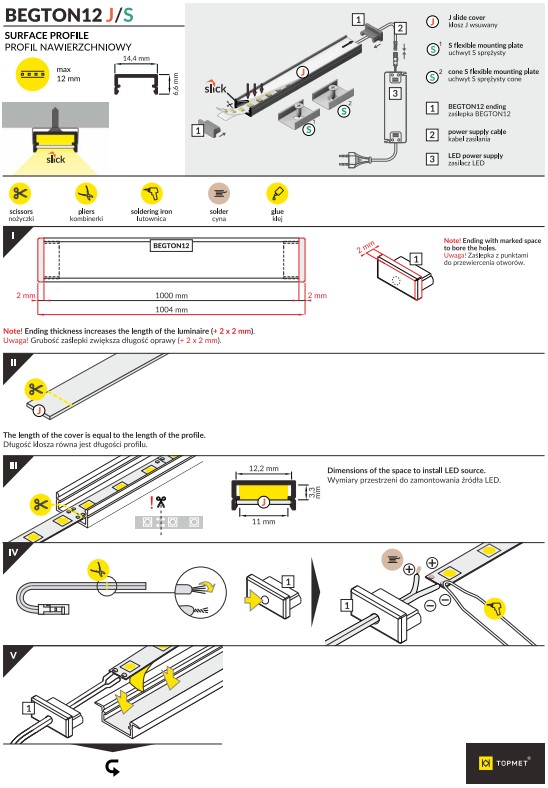 • Алюминиевый профиль Topmet BEGTON12 - 1 штука (1 метр)