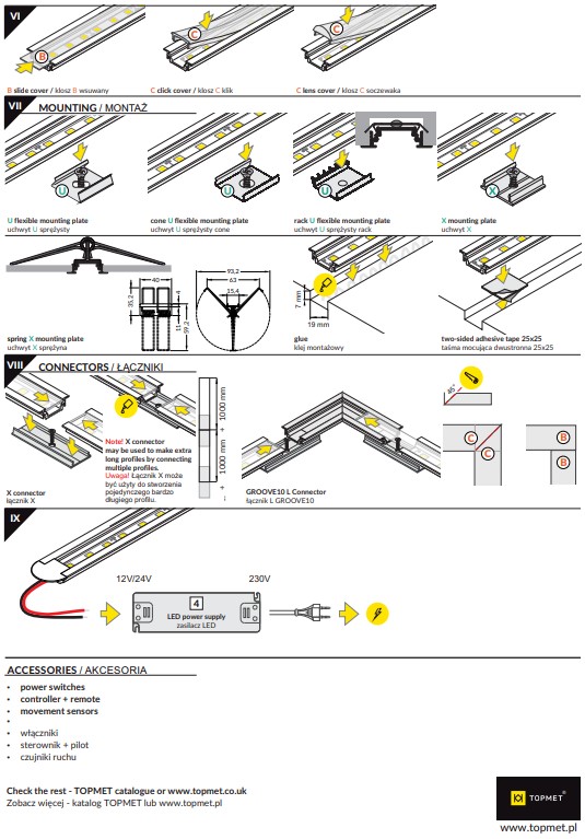 profile LED SET STANDARD GROOVE10 C opal U inox 2000 anod.