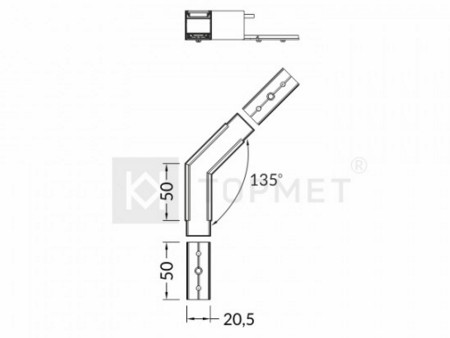 Соединитель Topmet LINEA20 EF/TY, для соединения под углом 135 °, анодированный алюминий.