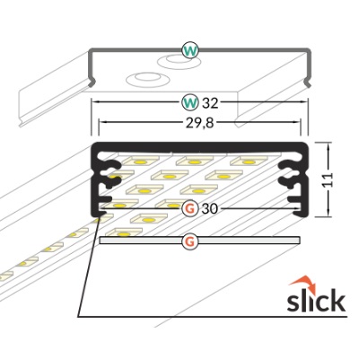 Обозначение LED profile WIDE24 G/W 2000 raw alu.
