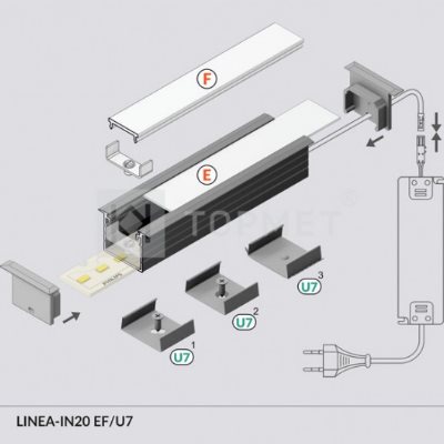 Обозначение LED profile LINEA-IN20 EF/U7 2000 black anod.