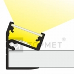 Отлично подходит для декорирования углов стеклянных конструкций и организации световых рамок. Свет может направляться вниз и вверх, при этом, благодаря конструкции профиля, никогда не бьет в глаза и не создает бликов.