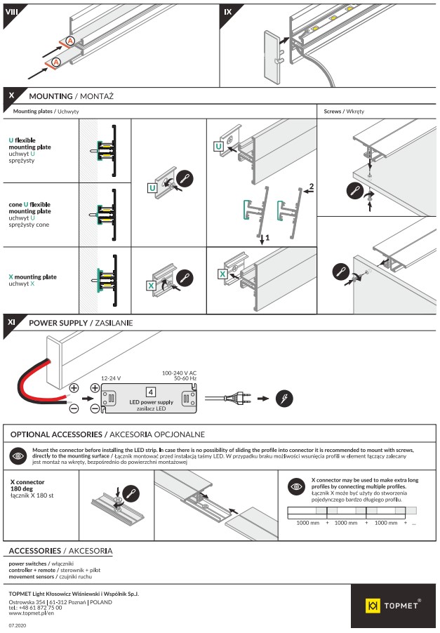 Категорически запрещена установка LED-профиля на влажную или сырую поверхность. Сборка и установка согласно инструкции.
