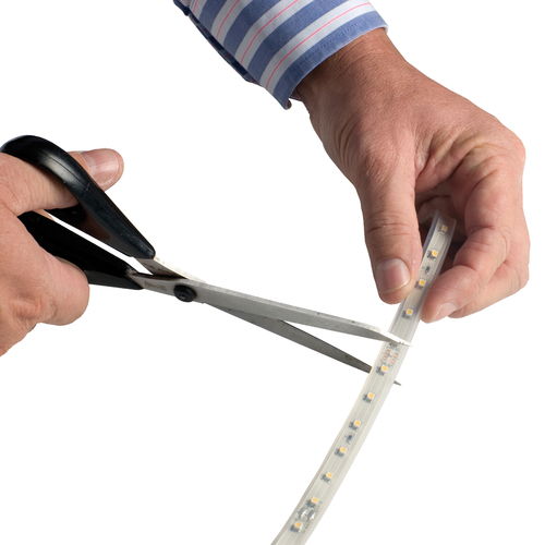 Светодиодная лента режется по специальным нанесенным линиям. При подключении необходимо соблюдать полярность, которая указана на ленте и источнике питания. При подключении к одному каналу источника питания более 5 м светодиодной ленты, рекомендуется каждые последующие 5 м подключать параллельно.