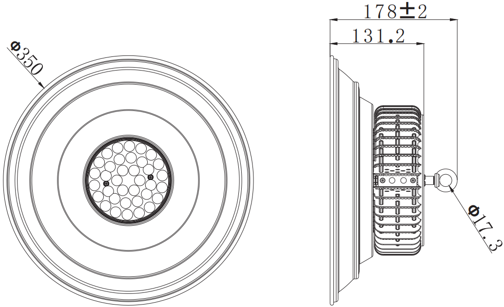 Прочный промышленный светильник. Конструкция подвесного промышленного светильника и используемые материалы обеспечивают защиту от накопления пыли и от брызг воды с любых направлений по классу IP54. Ударопрочный корпус (уровень ударопрочности IK07 - защита от объектов весом 0.5кг, падающего с высоты 40см, 2Дж) из алюминия гарантирует прочность, универсальность применения и безупречный внешний вид светильника на долгие годы.