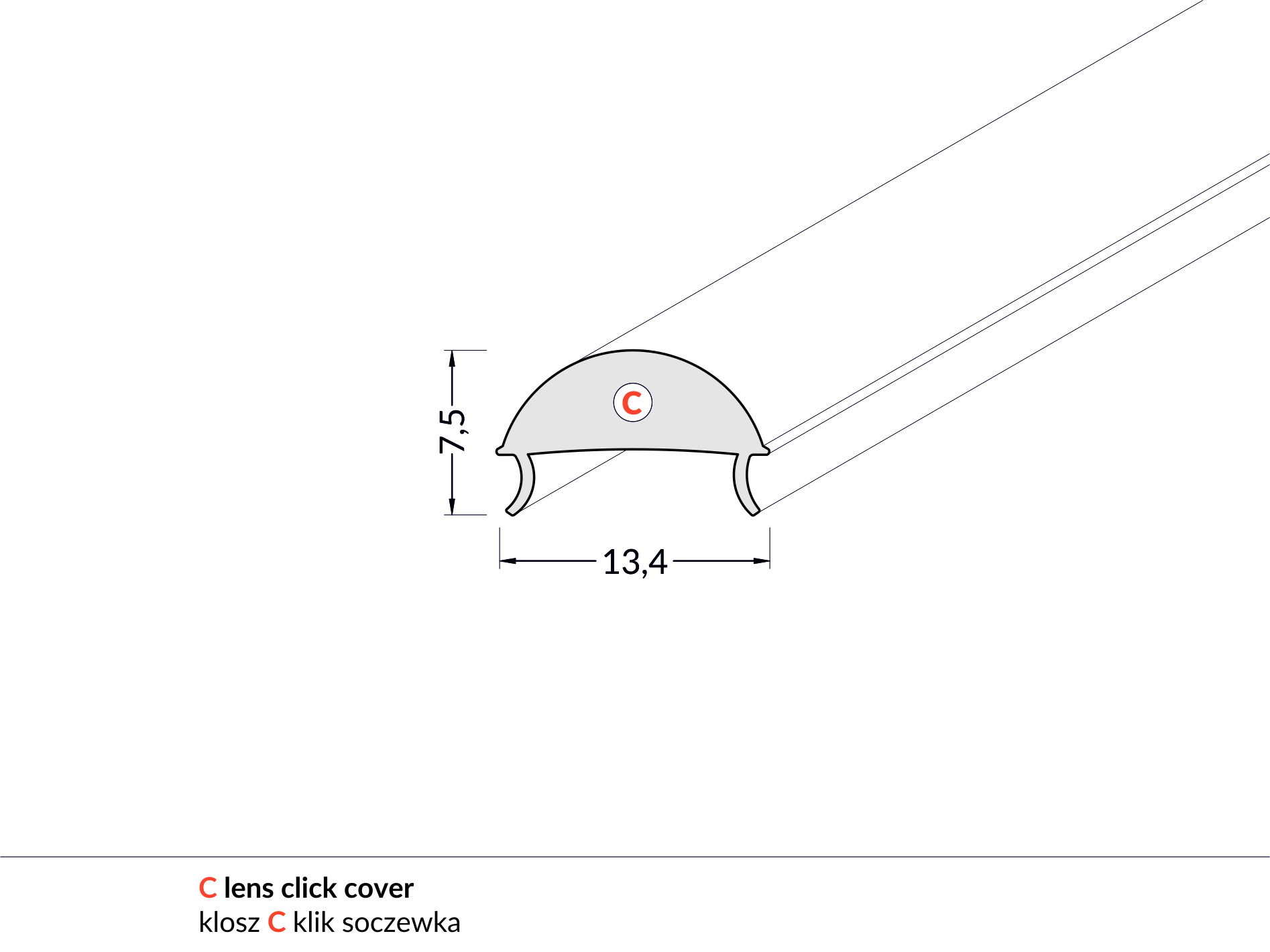 Рассеиватель Topmet 76300000, выполнен из поликарбоната (PC), прозрачный. Рассчитан на длину LED профиля в 2000мм