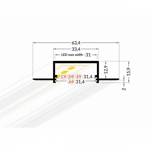 Встраиваемый LED профиль Topmet V3160000 отличается большой шириной, обеспечивающей возможность монтажа светодиодных лент шириной до 31мм. Предназначен для установки в уже имеющиеся прорезанные пазы в мебели и иных конструкциях. Выполнен из необработанного алюминия. Сечение - 63.4x15.9мм. Длина профиля 4000мм