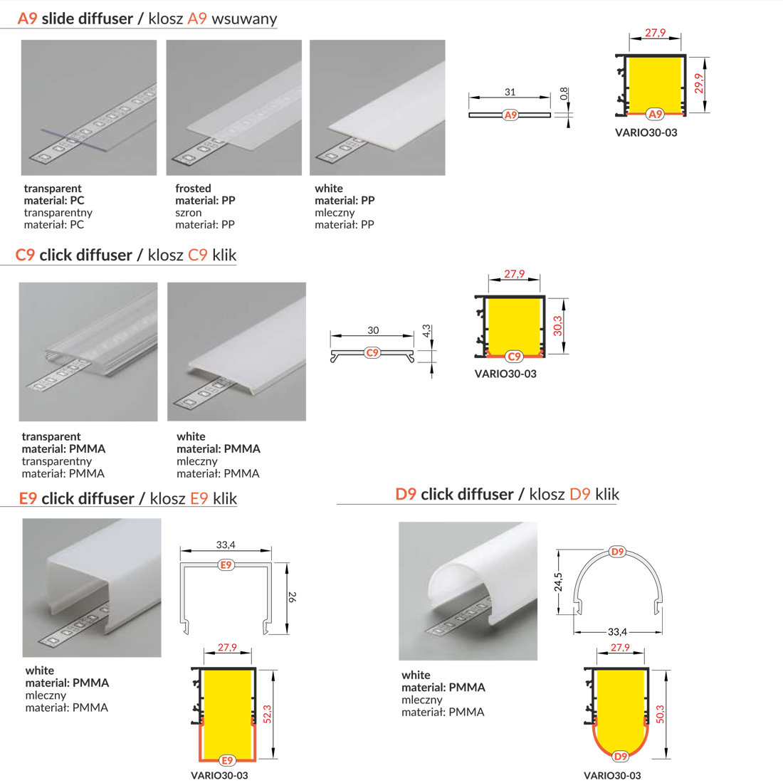 Обозначение LED profile VARIO30-03 3000 White