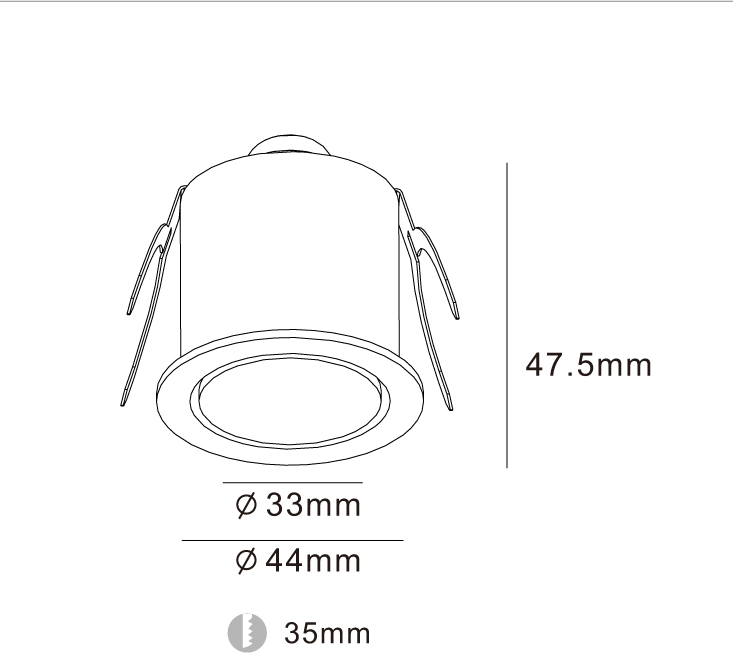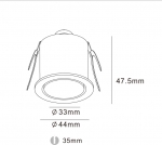 Врезное отверстие 35мм. Диаметр внутреннего круга 33мм. Установочный алюминиевый стакан в комплекте.